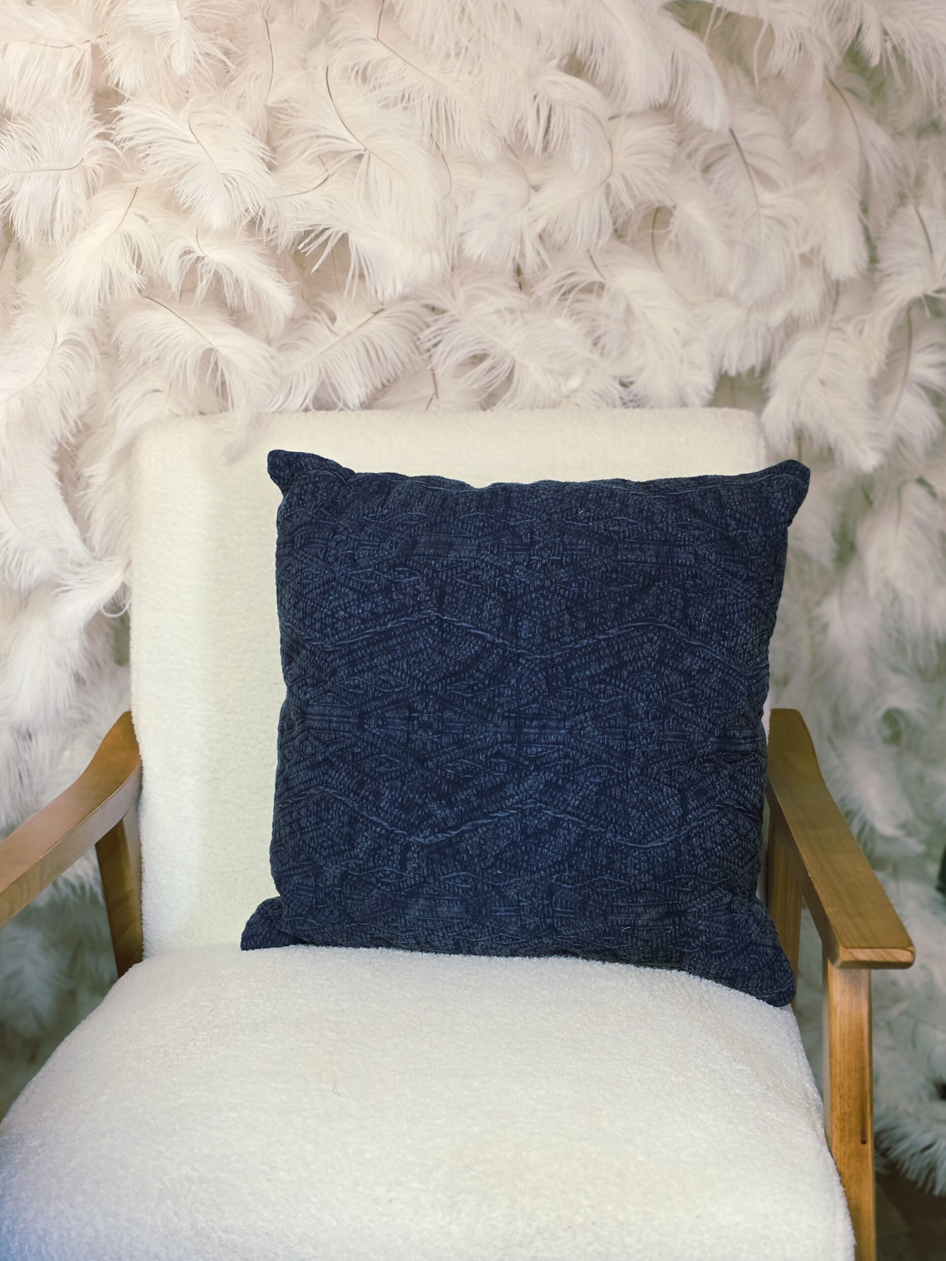 Velvet throw pillow in a rich navy hue, accented with subtle geometric stitching for a refined, modern touch.