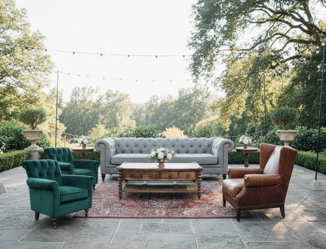 The cedar lounge balances masculine leather with earthy green and feminine silhouettes for a perfectly balanced pairing! This package includes: