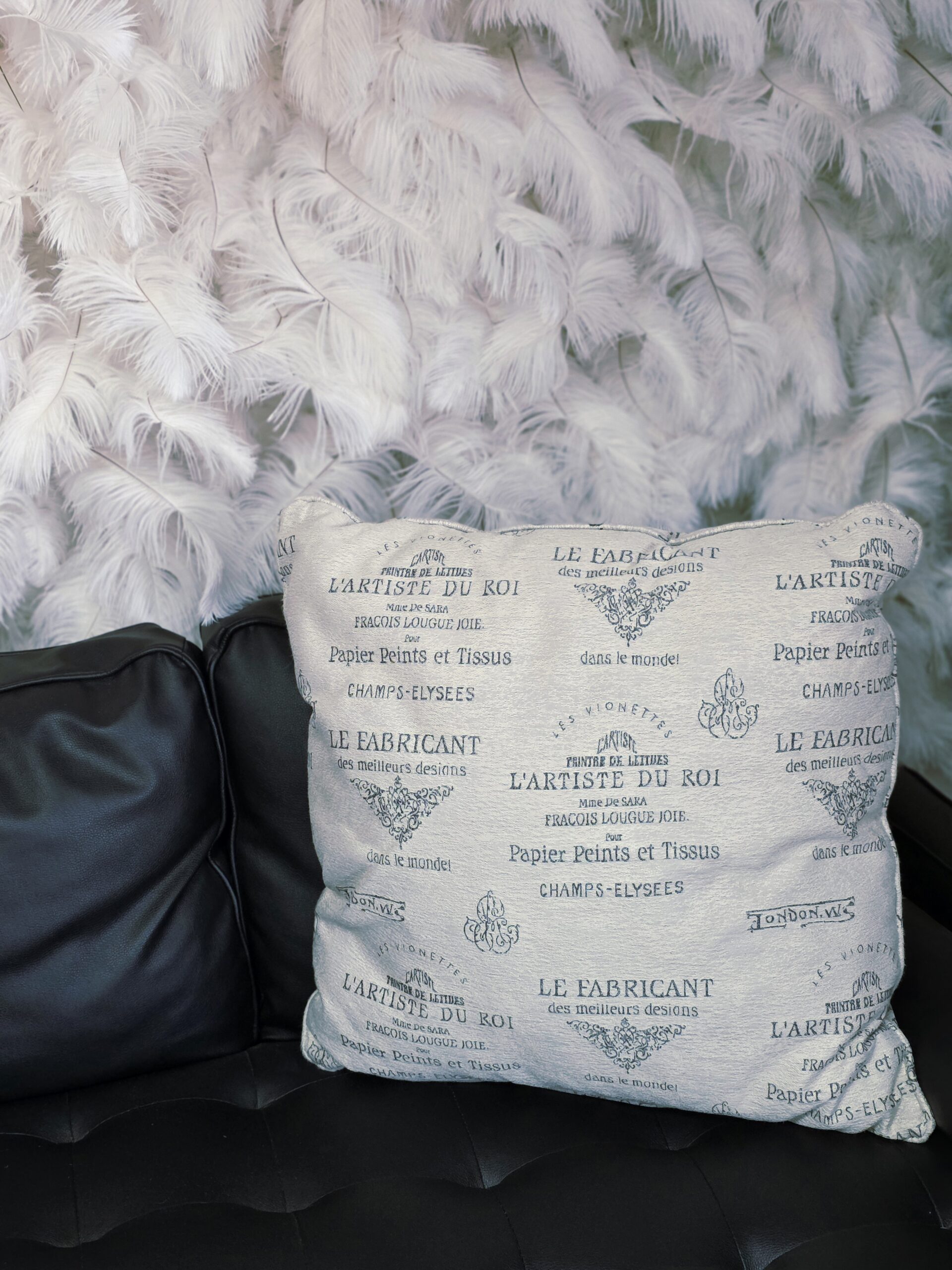 Add a touch of Paris with this throw pillow featuring French phrases.