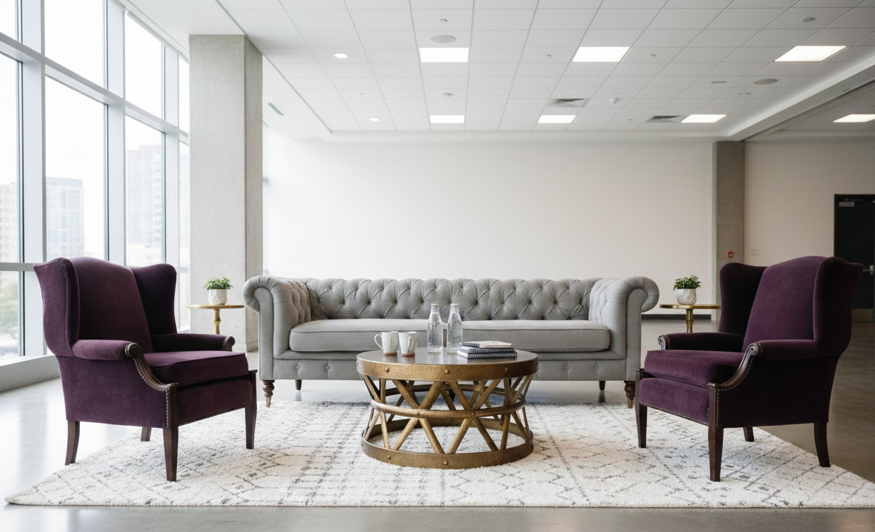 The Meadowbrook lounge rental package includes lovely grey and purple tones that work well in many seasons! This package includes: