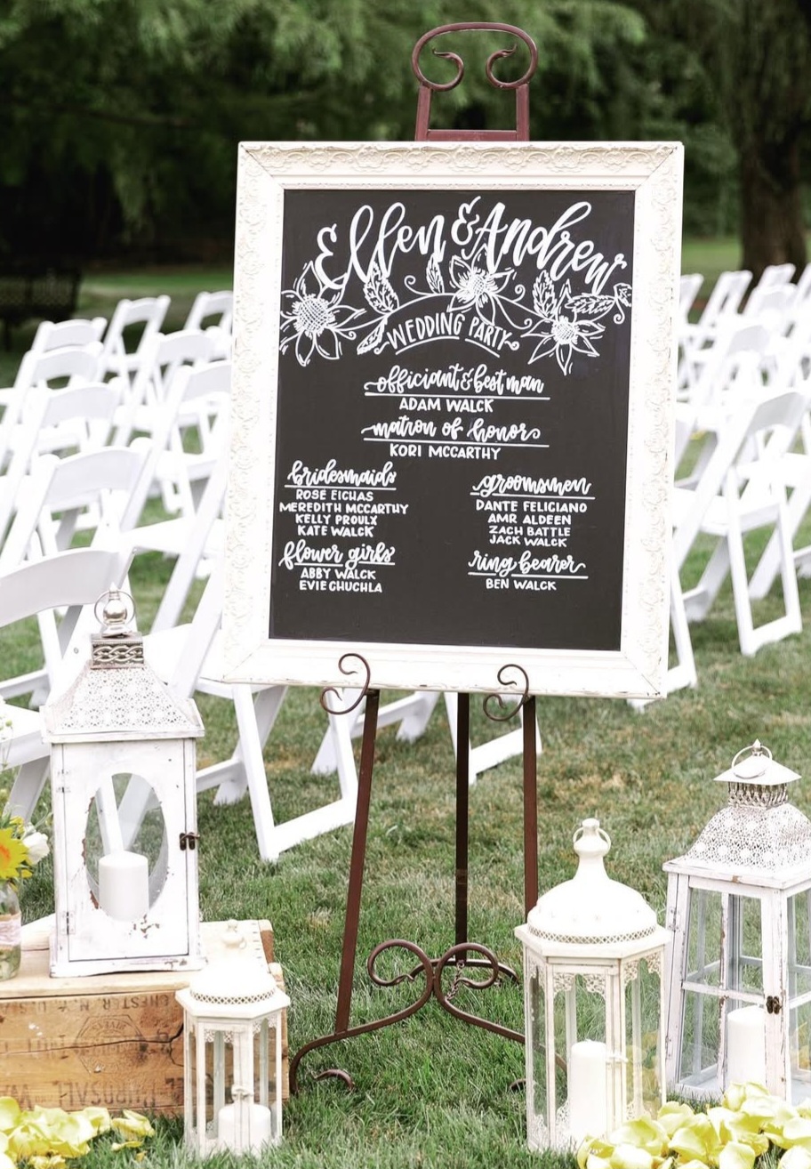 Medium white vintage inspired framed chalkboard. Writing not included but could be added with a design service fee.